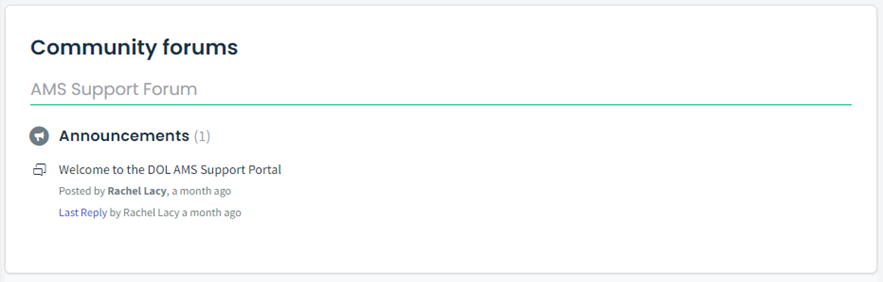 On the Forums page, users will be able to access the AMS community forum.